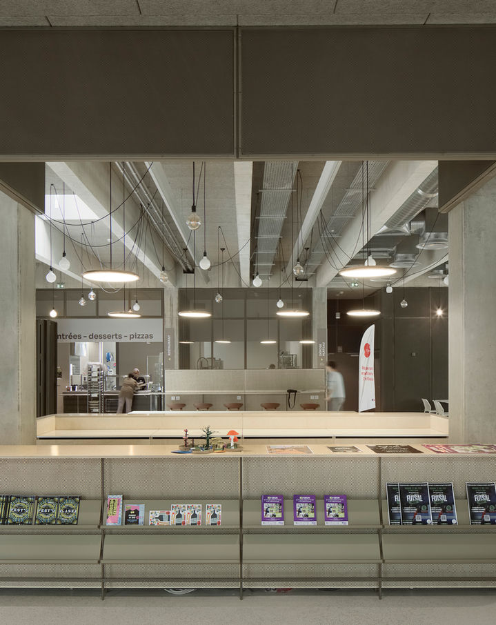 Le restaurant universitaire est un marqueur fort dans le tournant du campus. Il assure la transition vers une autre façon de penser la restauration collective, et vers l'enseignement de demain. Pour cela, on érige un bâtiment prévu pour durer, on conçois un espace qui accueille tout les étudiants, en mutualisant le service de restauration et les espace de travail, et on augmente la qualité des prestations intérieures à l'adresse des étudiants en proposant des solutions sur mesure, dessinées pour eux. Un lieu noble donc, qui rompt avec la monotonie et l'indigence des équipements collectifs. On appui la volonté de faire de l'espace une valeur sensible partagée et appréciée.